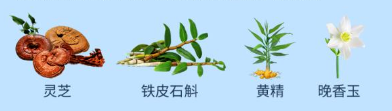 仙草御颜方:含有灵芝、铁皮石斛、晚香玉、黄精等成分,能够抗糖、抗氧、促进水通道蛋白AOP3表达、抑制Clock基因,四维重塑肌肤抗老防御力。