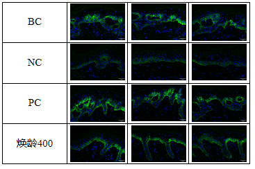 通过离体皮肤实验发现,【焕龄400】可以显著提升Collagen XⅦ的表达,提升率为169.70%。稳固基底网状结构和表皮的连接。